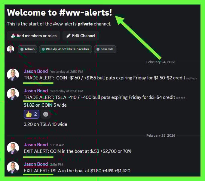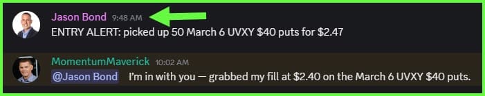 And again today — the UVXY alert went out inside Weekly Windfalls VIP Trade Alerts (chat AND email).